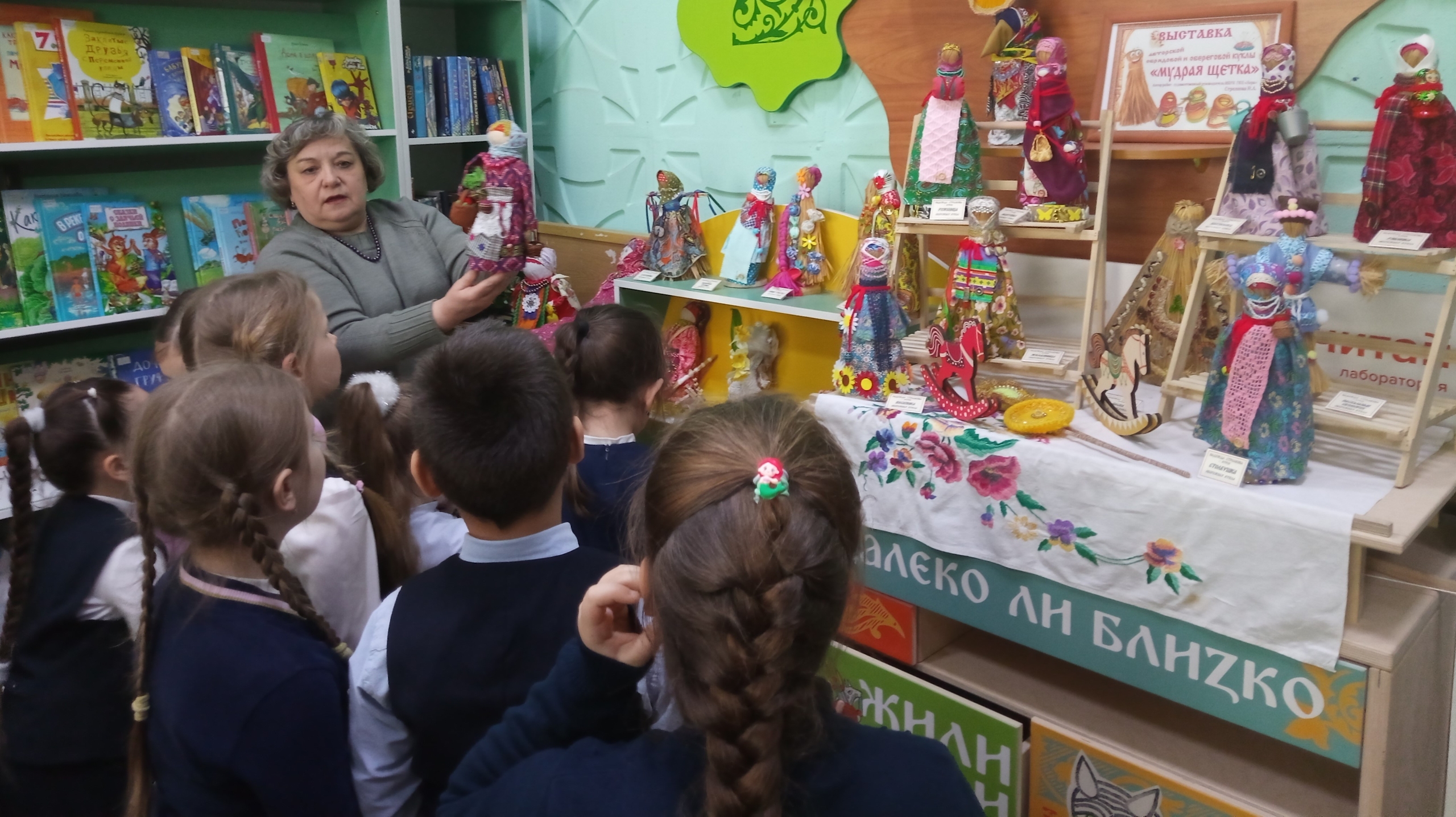 17 апреля 2026 года учащиеся Средняя общеобразовательная школа № 49 посетили авторскую выставку Надежды Стрелковой в лаборатории «#ЗнайЧитай», посвящённую народным куклам