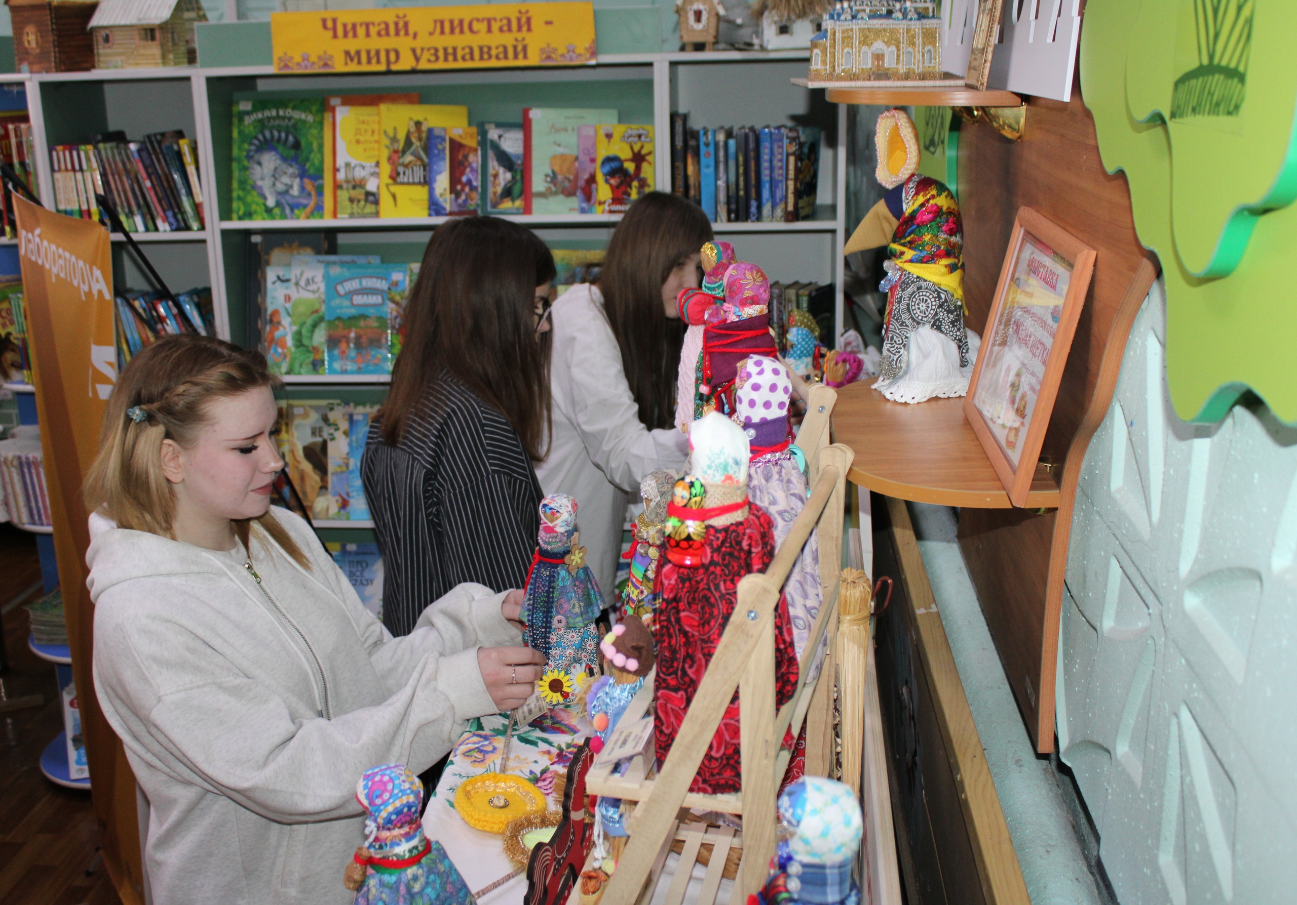 14 апреля 2026 года активисты «Движения Первых» Кореневской средней школы № 1 им. В. Крохина познакомились с выставкой авторских кукол Надежды Стрелковой, посвящённой традиционным русским куклам-оберегам