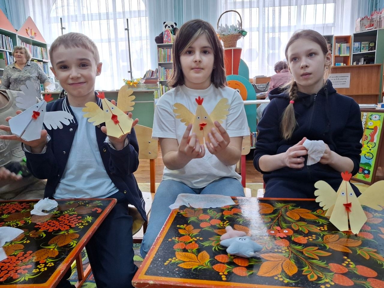 Кульминацией встречи стало творчество. В руках ребят ожили петушки: каждый участник своими руками изготовил яркую поделку-петушка из цветной бумаги.