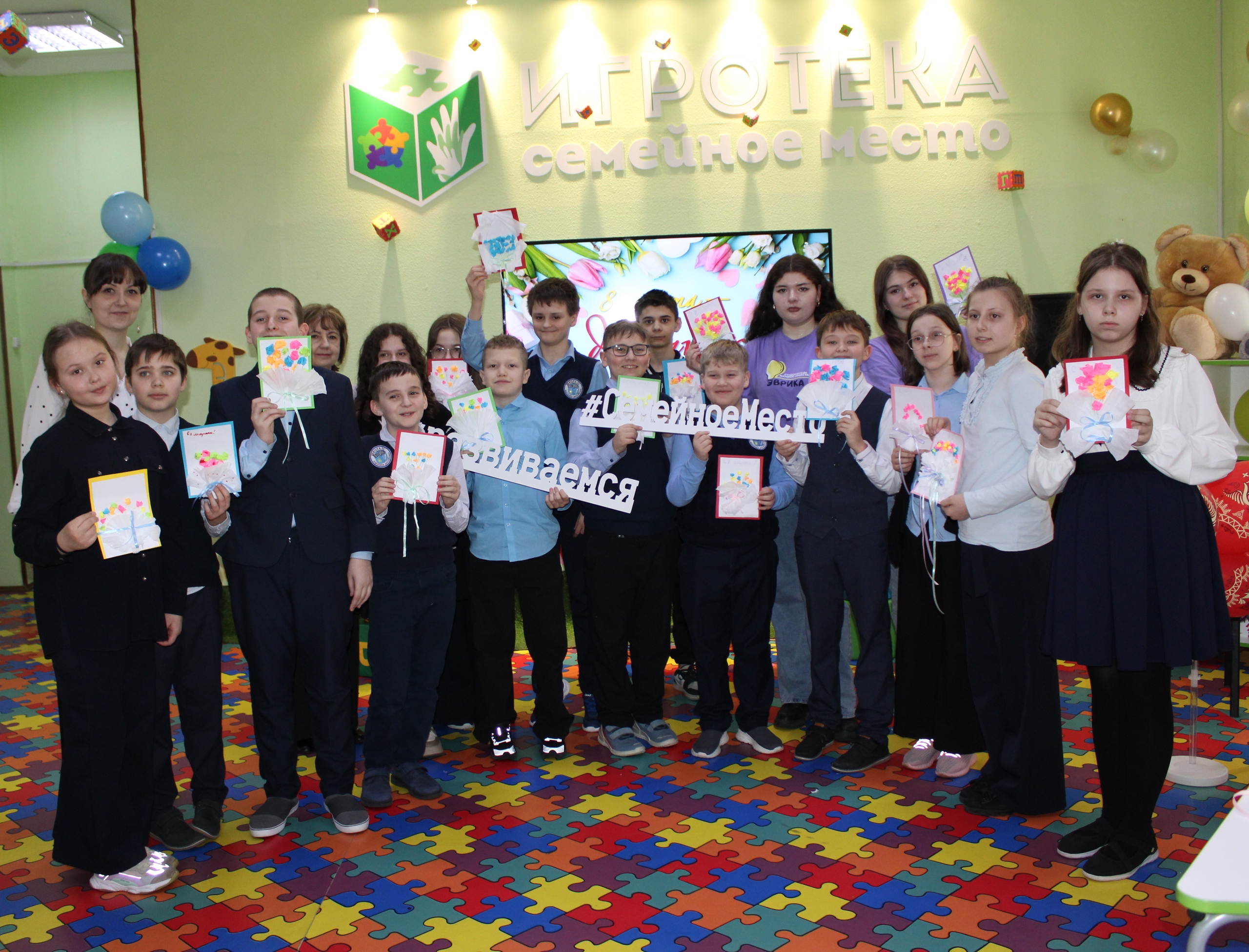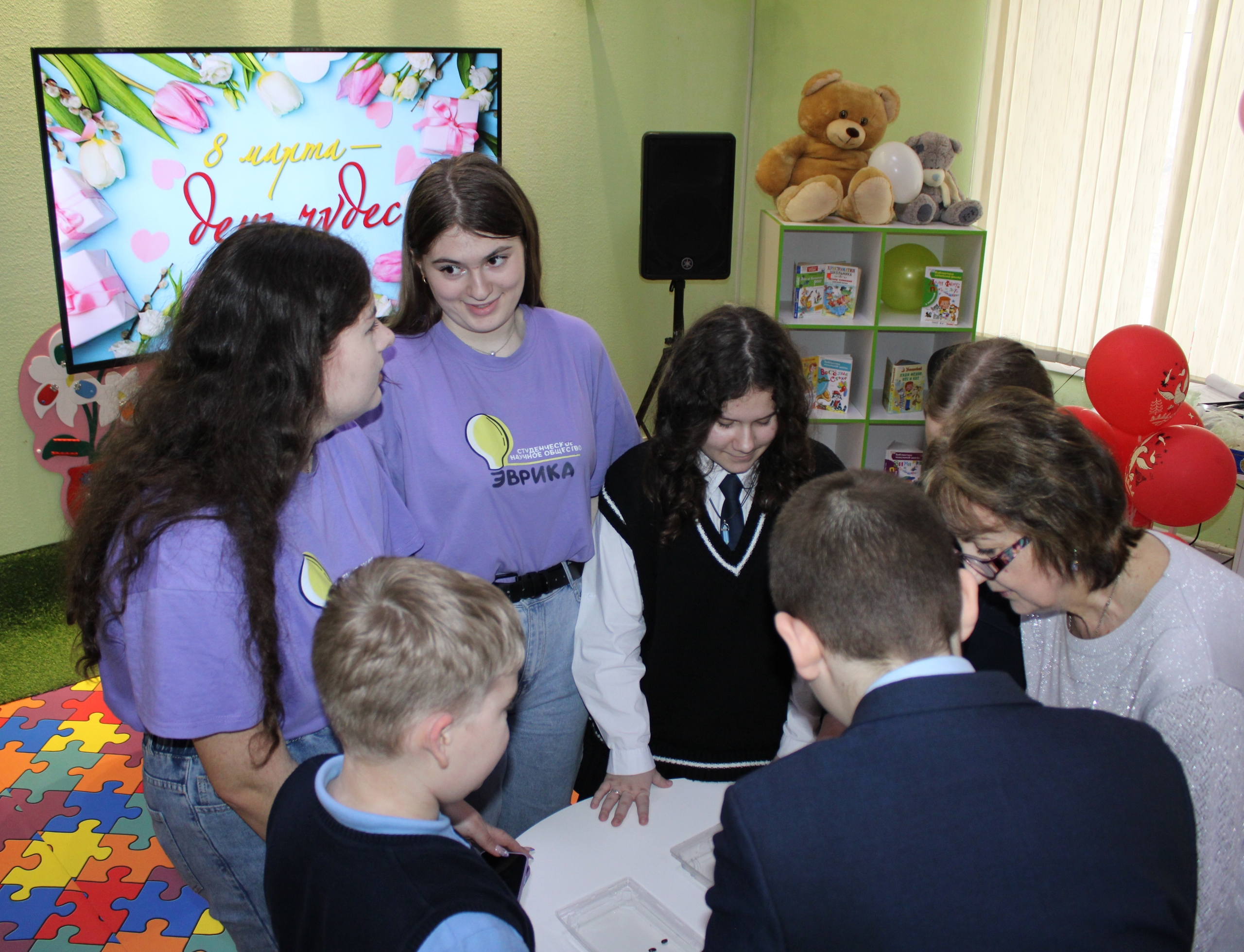 В завершение члены студенческого научного сообщества «Эврика» Курского педагогического колледжа провели для ребят мастер-класс по изготовлению оригинальных поздравительных открыток.