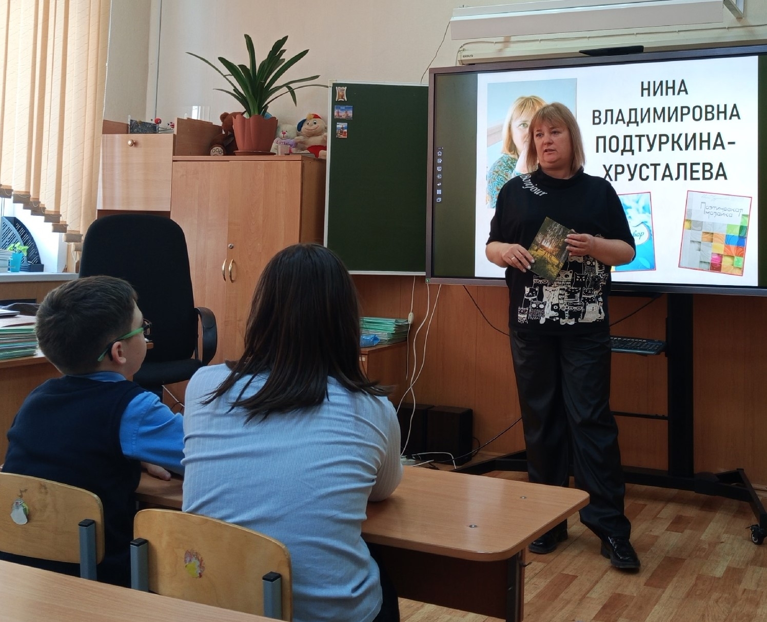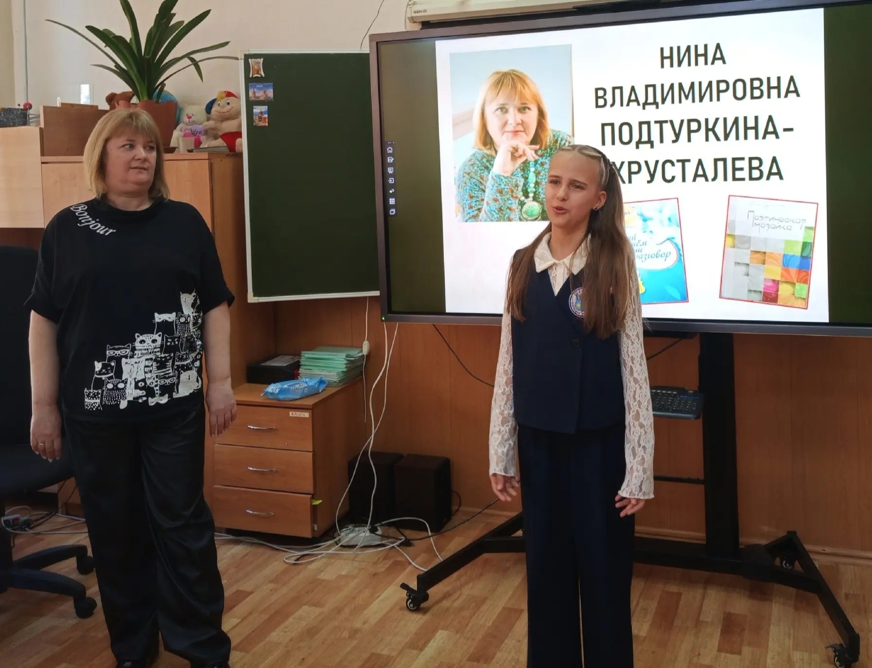 В рамках литературного клуба «Букляндия» учащиеся средней школы № 32 им. прп. Серафима Саровского стали участниками встречи с писателем, членом Союза курских литераторов Ниной Владимировной Подтуркиной-Хрусталевой.