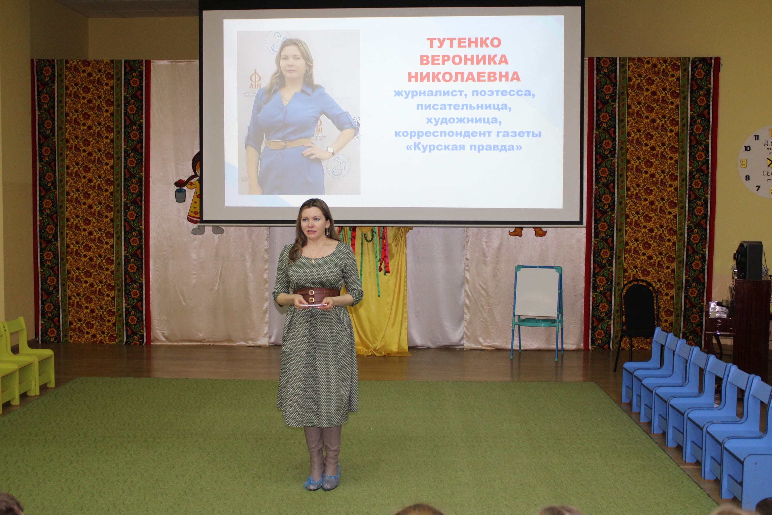 Особенным подарком стала встреча с писательницей, журналистом, корреспондентом газеты «Курская правда» Вероникой Тутенко. Вероника Николаевна поделилась секретами своего творчества и представила героев собственных стихотворений. Встреча стала настоящим праздником, подарив участникам массу положительных эмоций и вдохновив на дальнейшее знакомство с миром литературы и чтение книг.