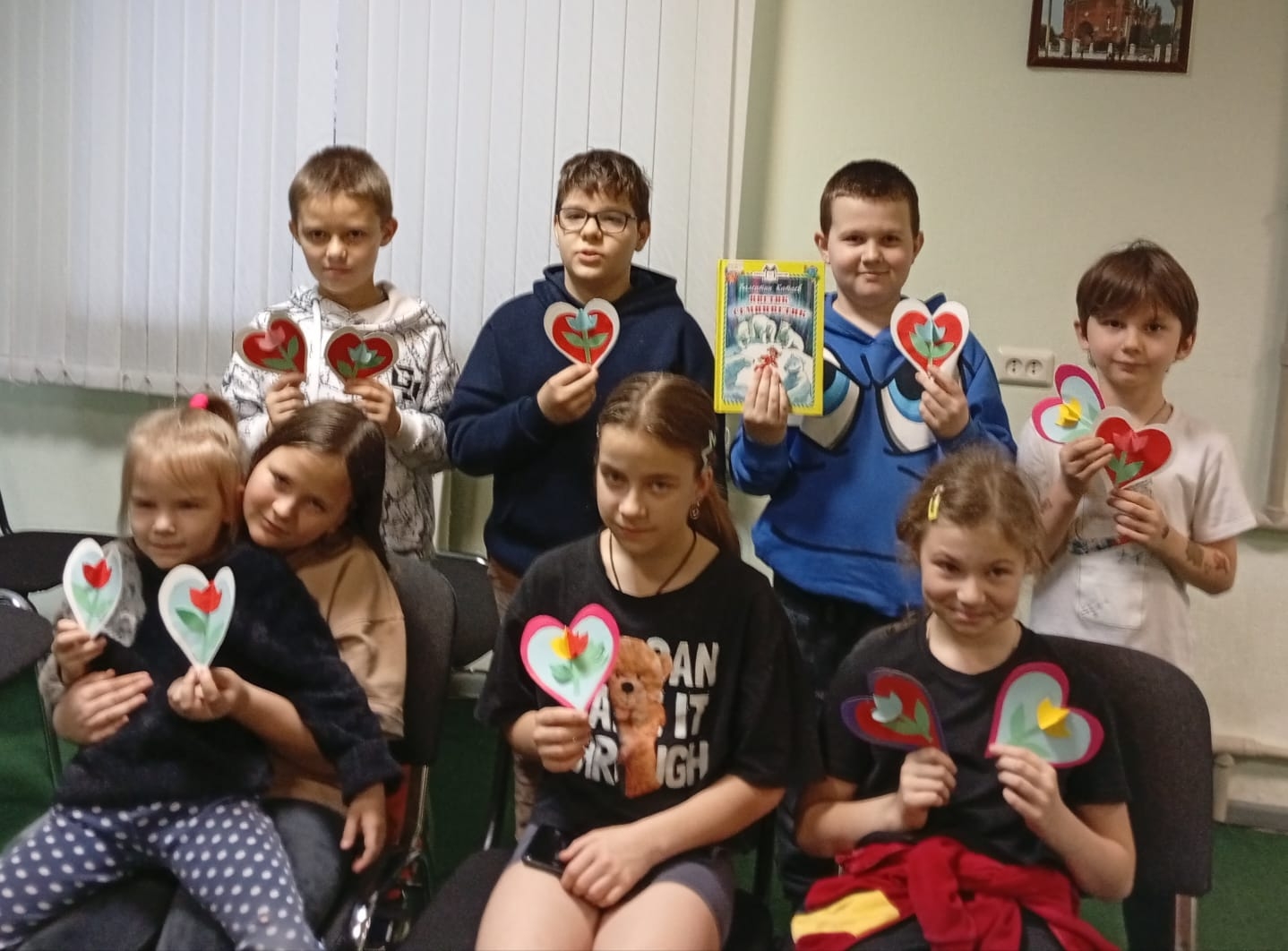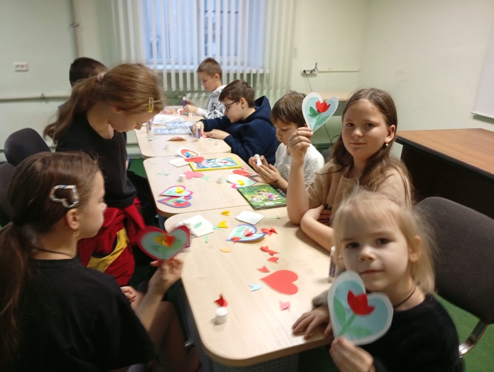В завершение выполнили творческую работу — поздравительную открытку в форме сердечка.