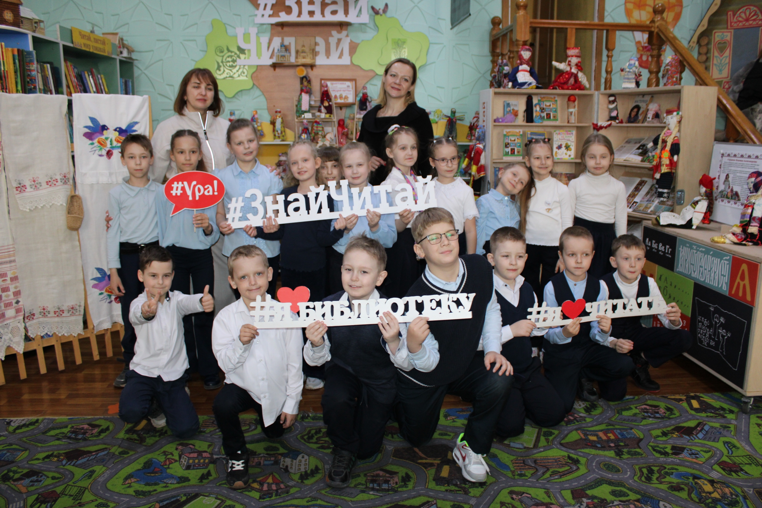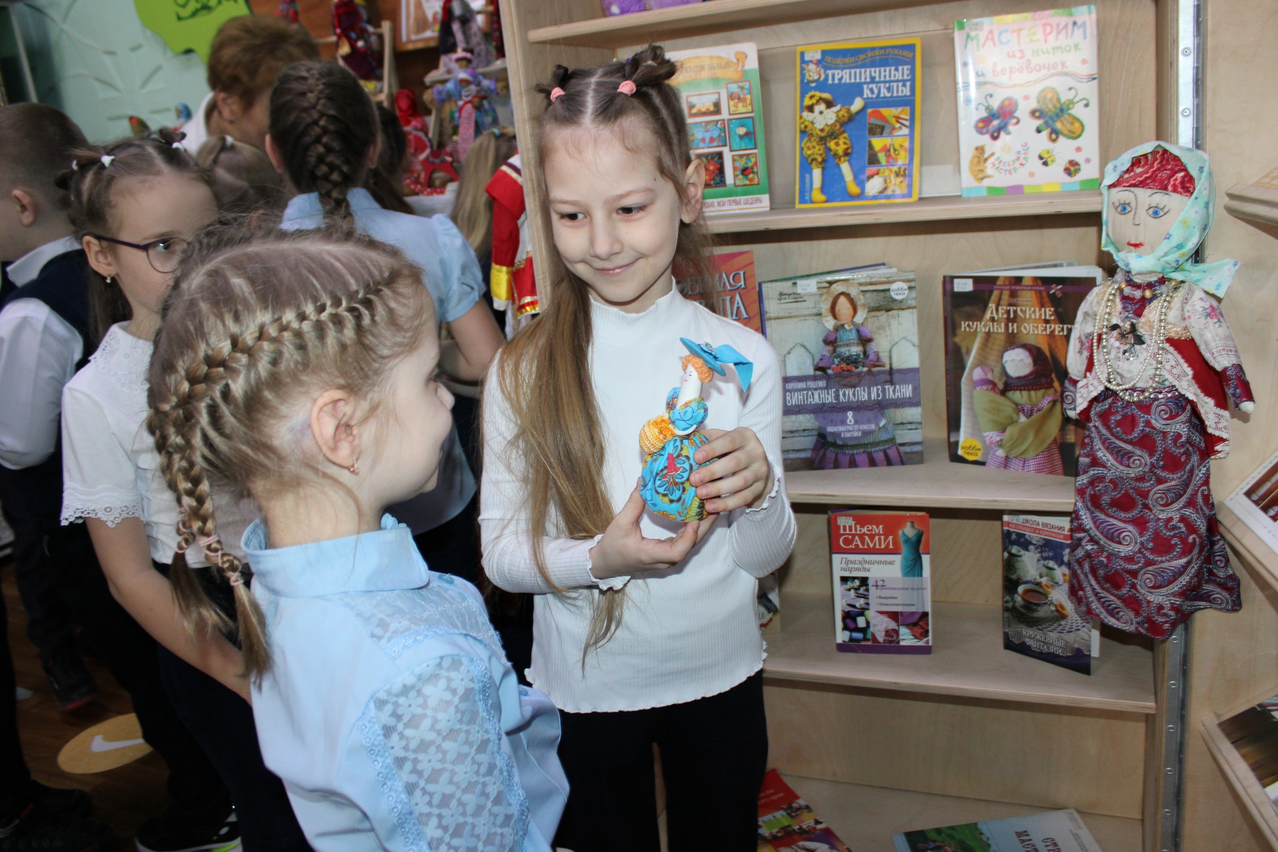Учащиеся Средняя общеобразовательная школа № 49 посетили авторскую выставку Надежды Стрелковой в лаборатории «#ЗнайЧитай», посвящённую народным куклам.