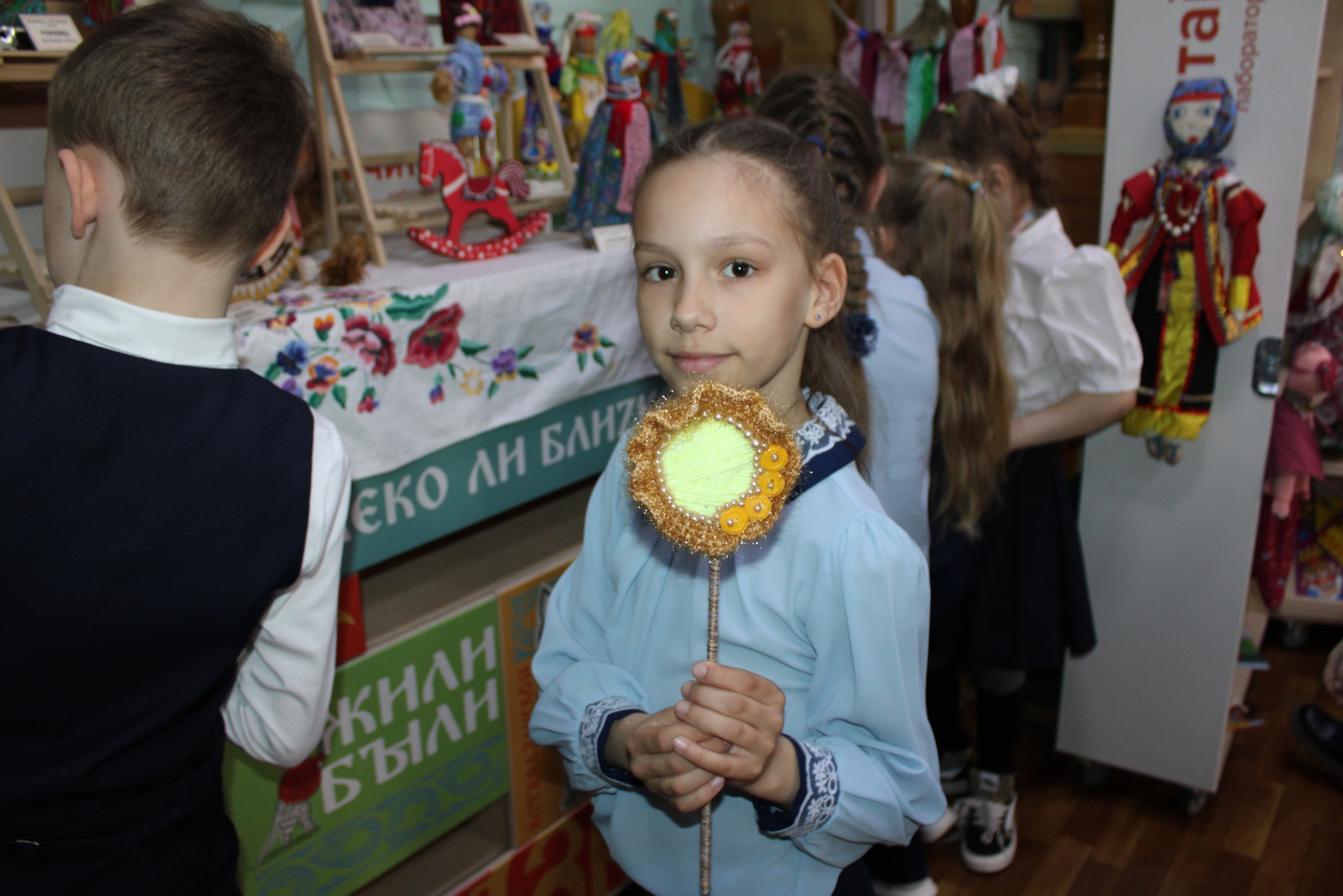 Экспозиция вызвала живой интерес: школьники с восторгом рассматривали кукол-оберегов, каждая из которых хранит тепло рук мастера и частичку русской души. Это стало настоящим путешествием в мир традиций, обычаев и творчества.
