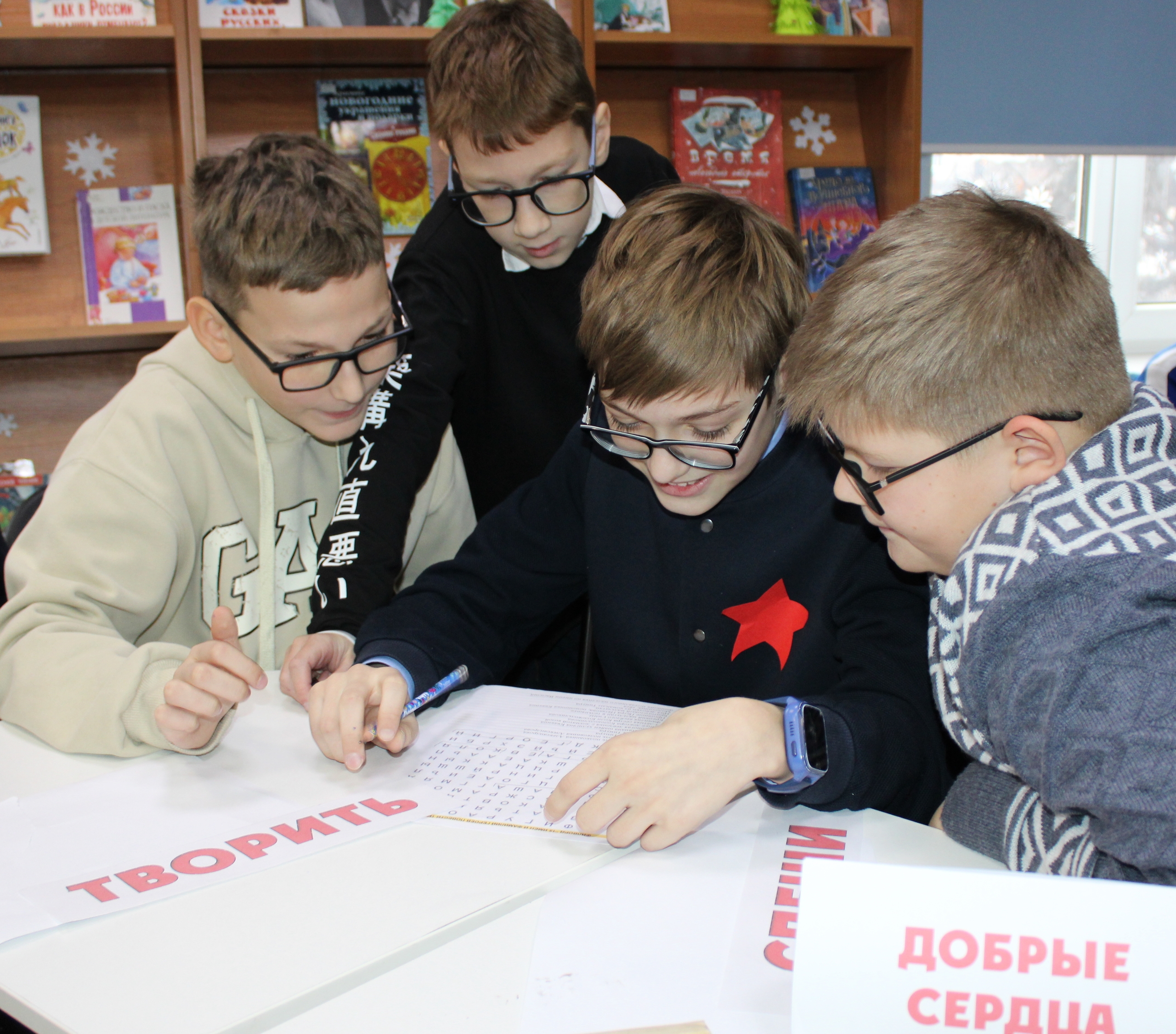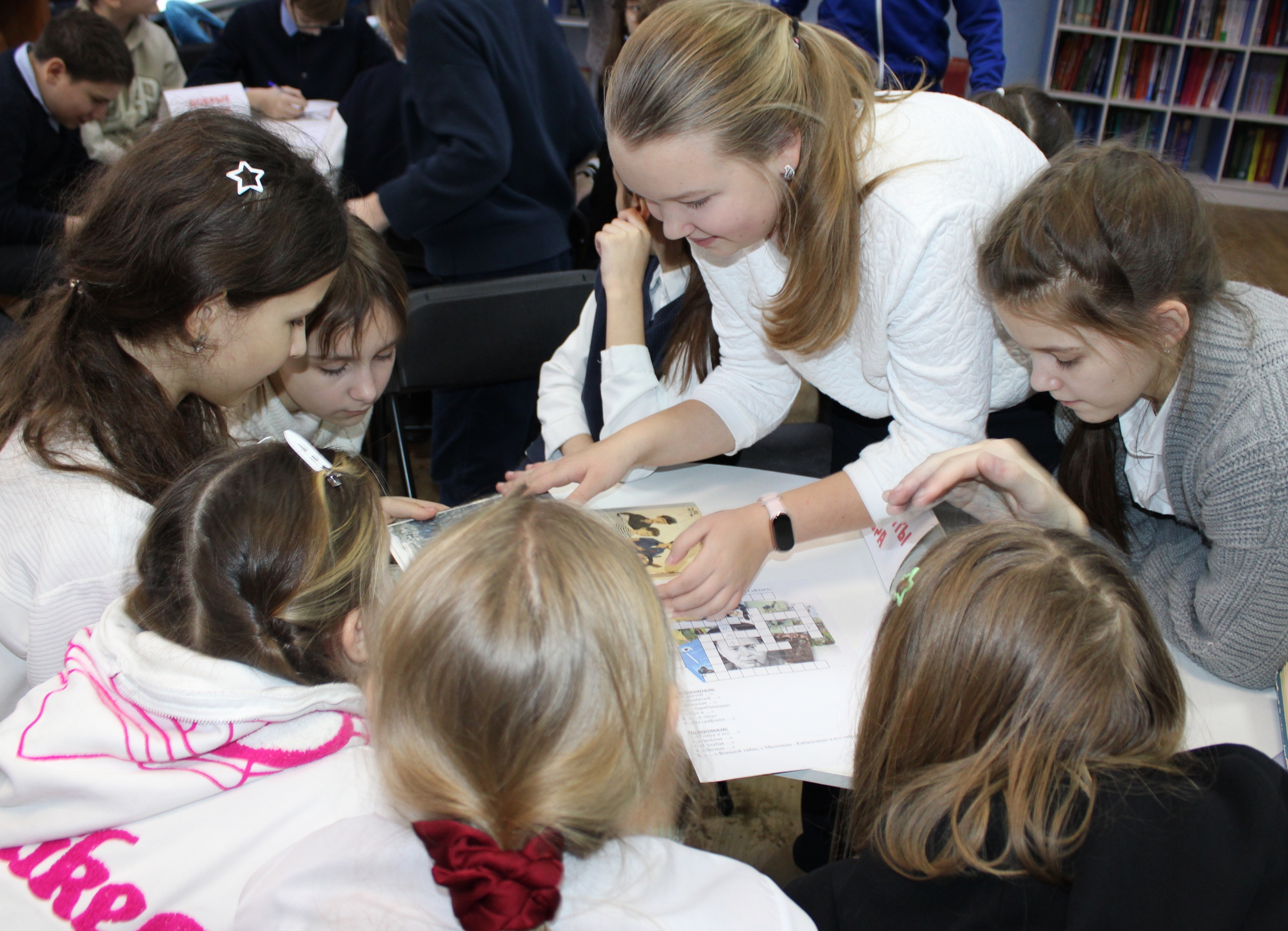Ребята разделились на две команды и устроили соревнование, отвечая на вопросы по сюжету произведения, вспоминая яркие моменты и узнавая персонажей по описаниям и цитатам. За верные ответы участники зарабатывали подсказки.
