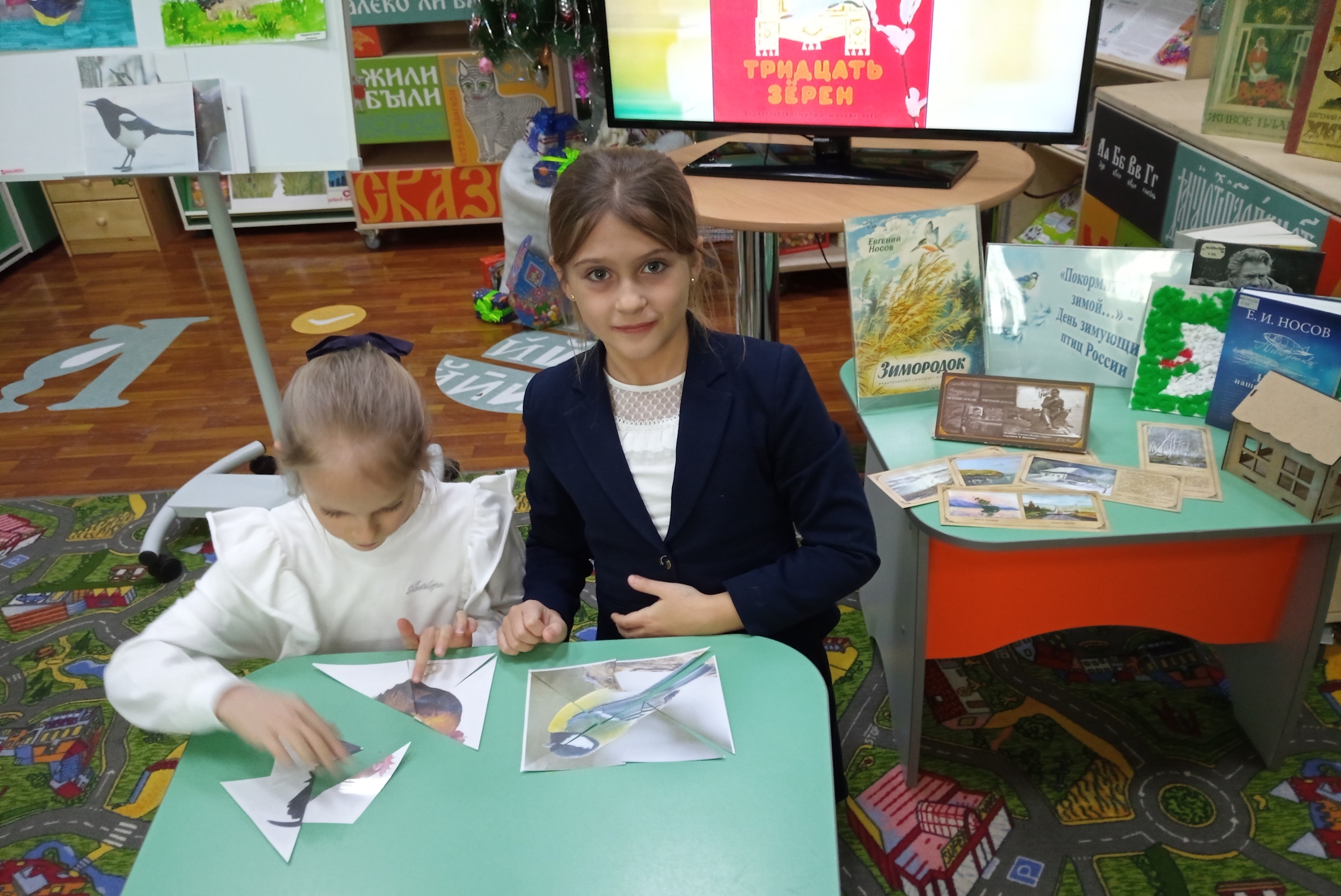 Учащиеся гимназии № 4 узнали интересные факты из жизни знаменитого земляка, вспомнили его самые известные произведения для детей, складывали пазлы с изображением главных персонажей книг: «Белый гусь», «Хитрюга», «Тридцать зернен», «Зимородок». Дети также открыли для себя талант Носова-художника, познакомившись с репродукциями работ мастера.