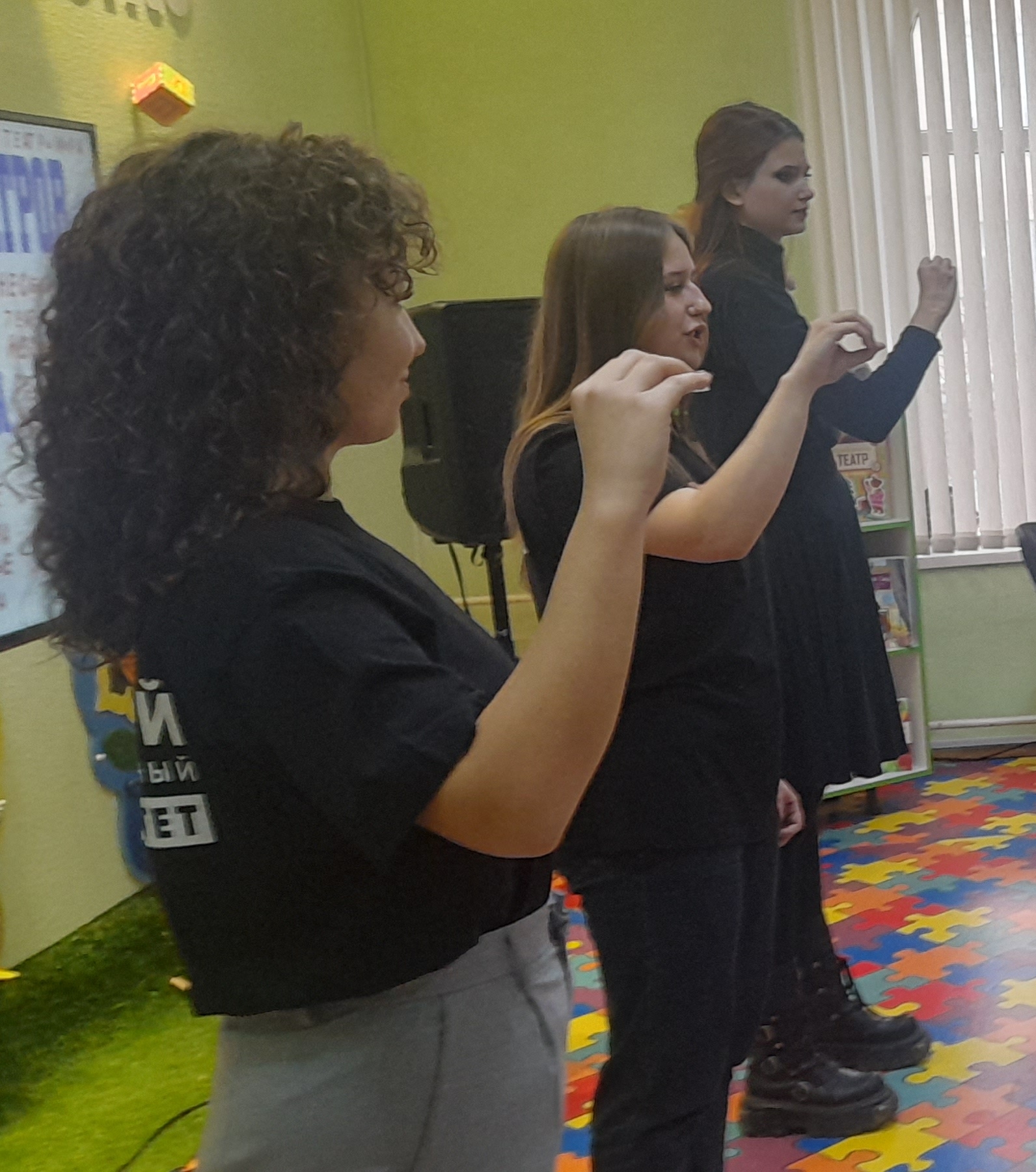 В завершение все вместе решили испытать себя в искусстве общения через мир невербальных знаков.