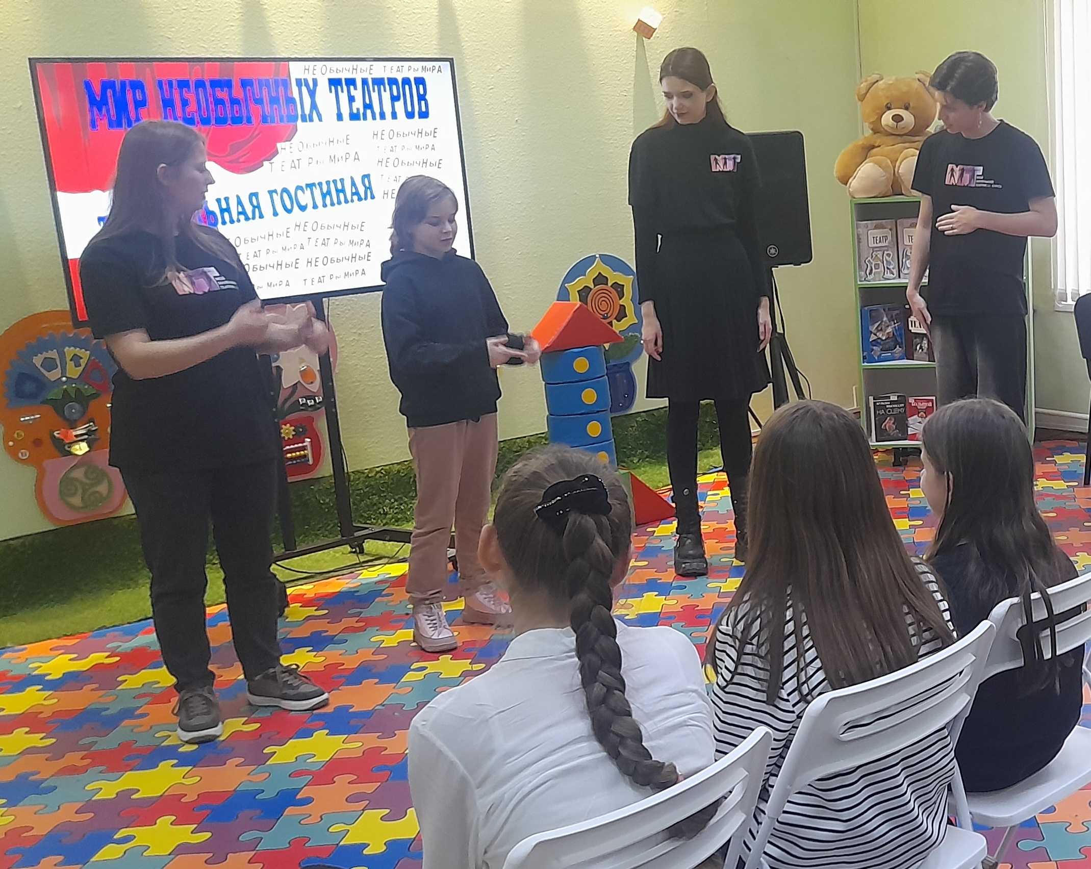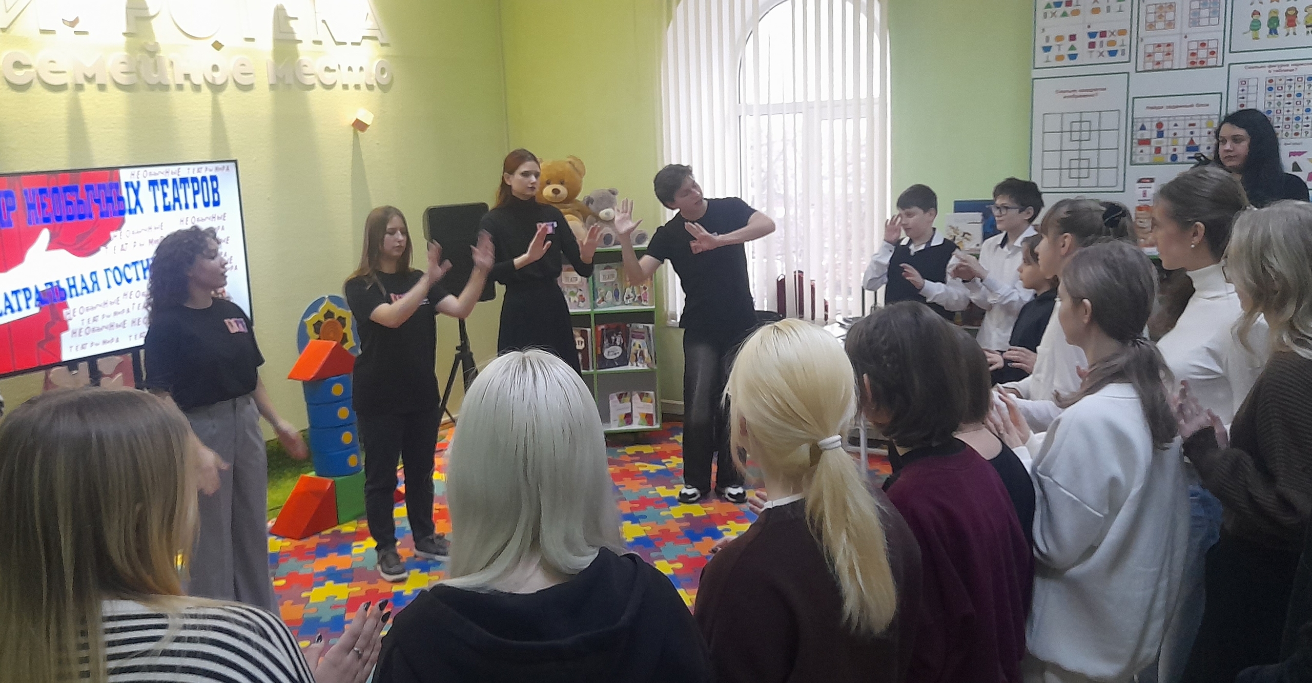 В гости пришли актёры экспериментальной студии «Мой маленький театрик», художественный руководитель — лауреат международных конкурсов Ольга Мошенко.
