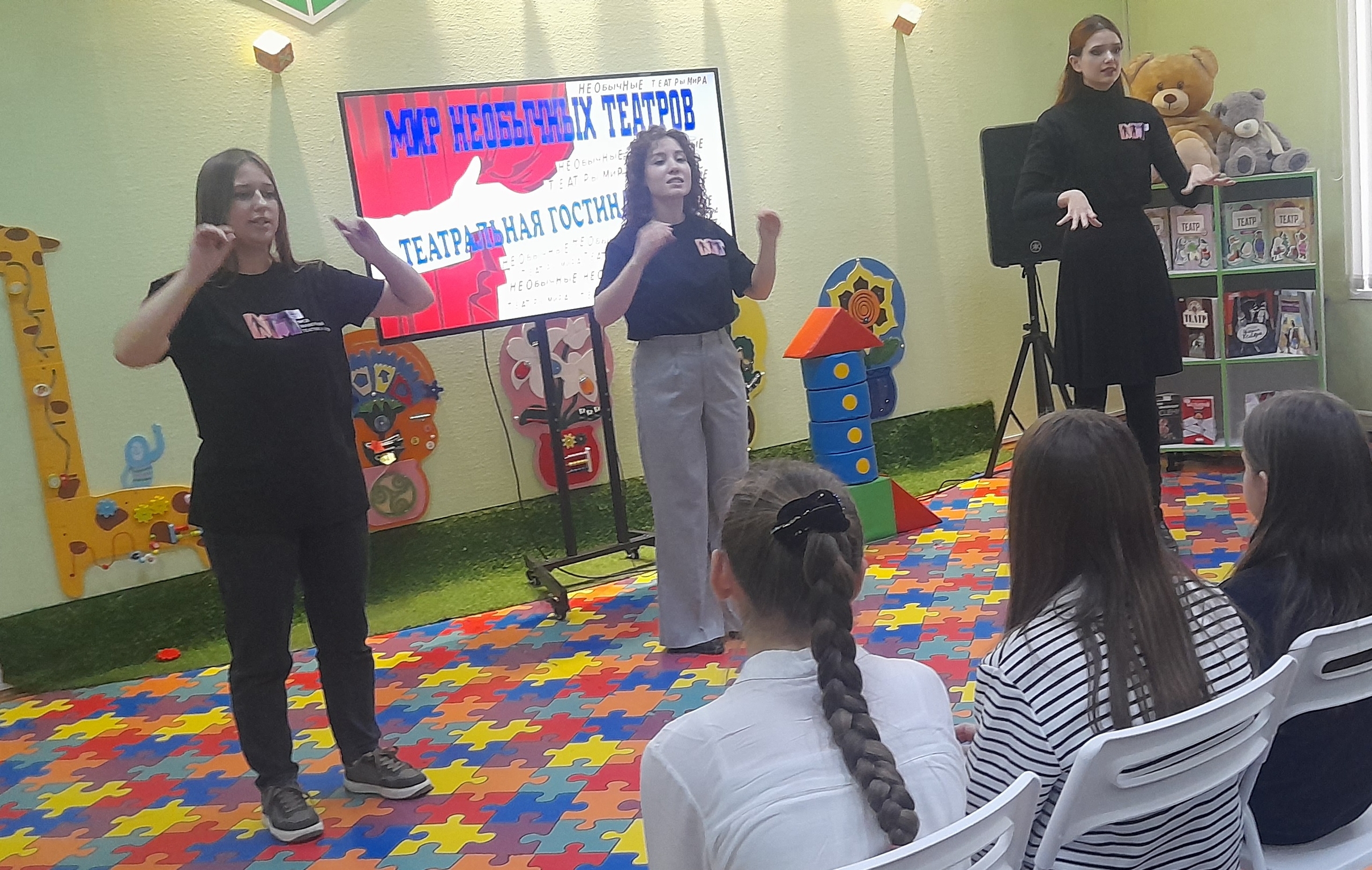 Актерская команда продемонстрировали ребятам необычное направление театра — русский жестовый язык, научив понимать разные знаки и символы. После этого артисты исполнили несколько песен, покорив присутствующих эмоциональностью и оригинальностью выступления.