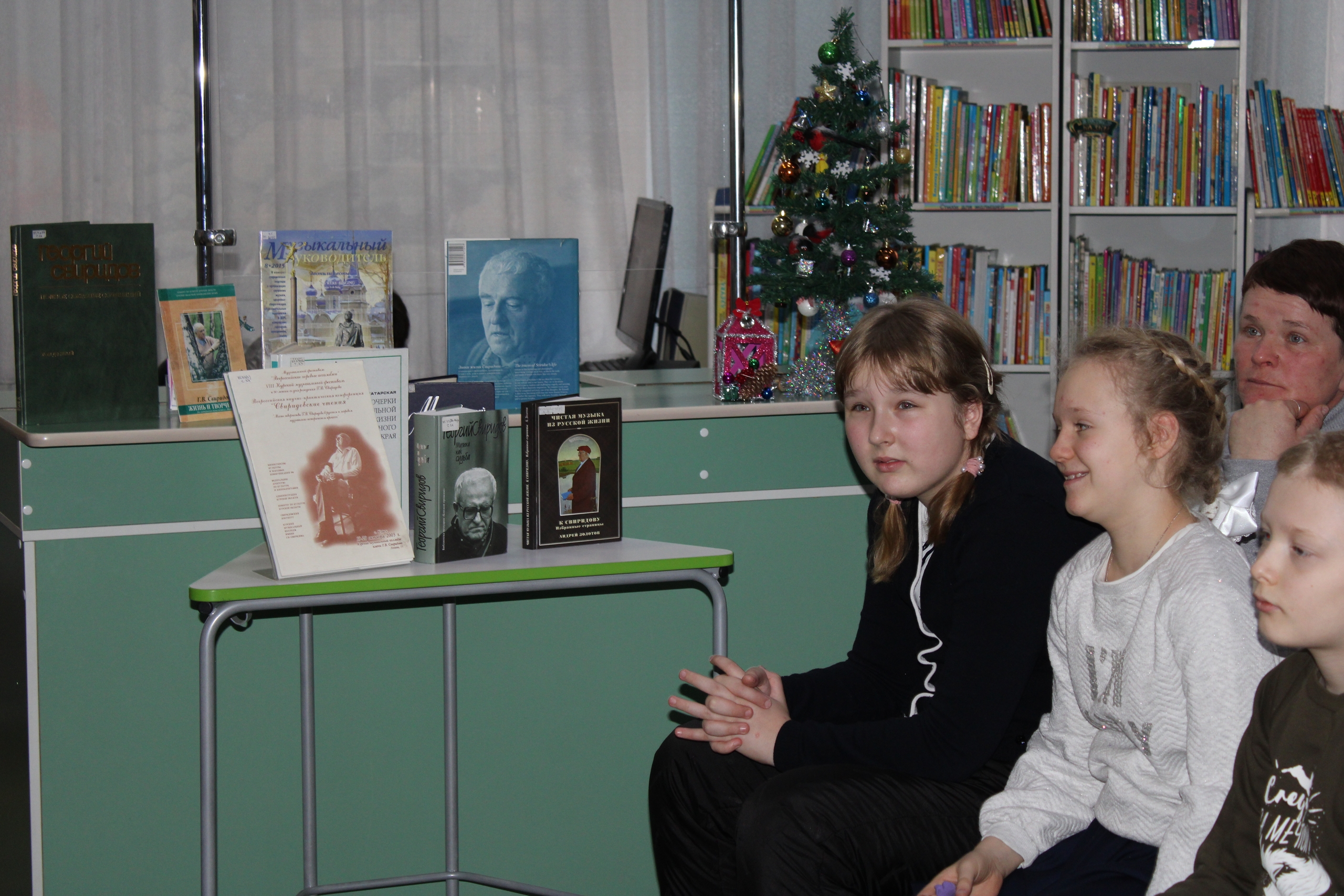 Далее участники познакомились с жизненным путем и творчеством Свиридова, посмотрели видеоролики с исполненными композициями: «Зимняя дорога», «Святое братство», кантату «Курские песни»: фрагменты «Парень с гармошкой» и «Воспой, воспой, жаворонок», колыбельную песенку и пьесу «Ласкающая просьба» из сборника «Альбом для детей», а также знаменитую мелодию «Время, вперед!», ставшей визитной карточкой знаменитого композитора.