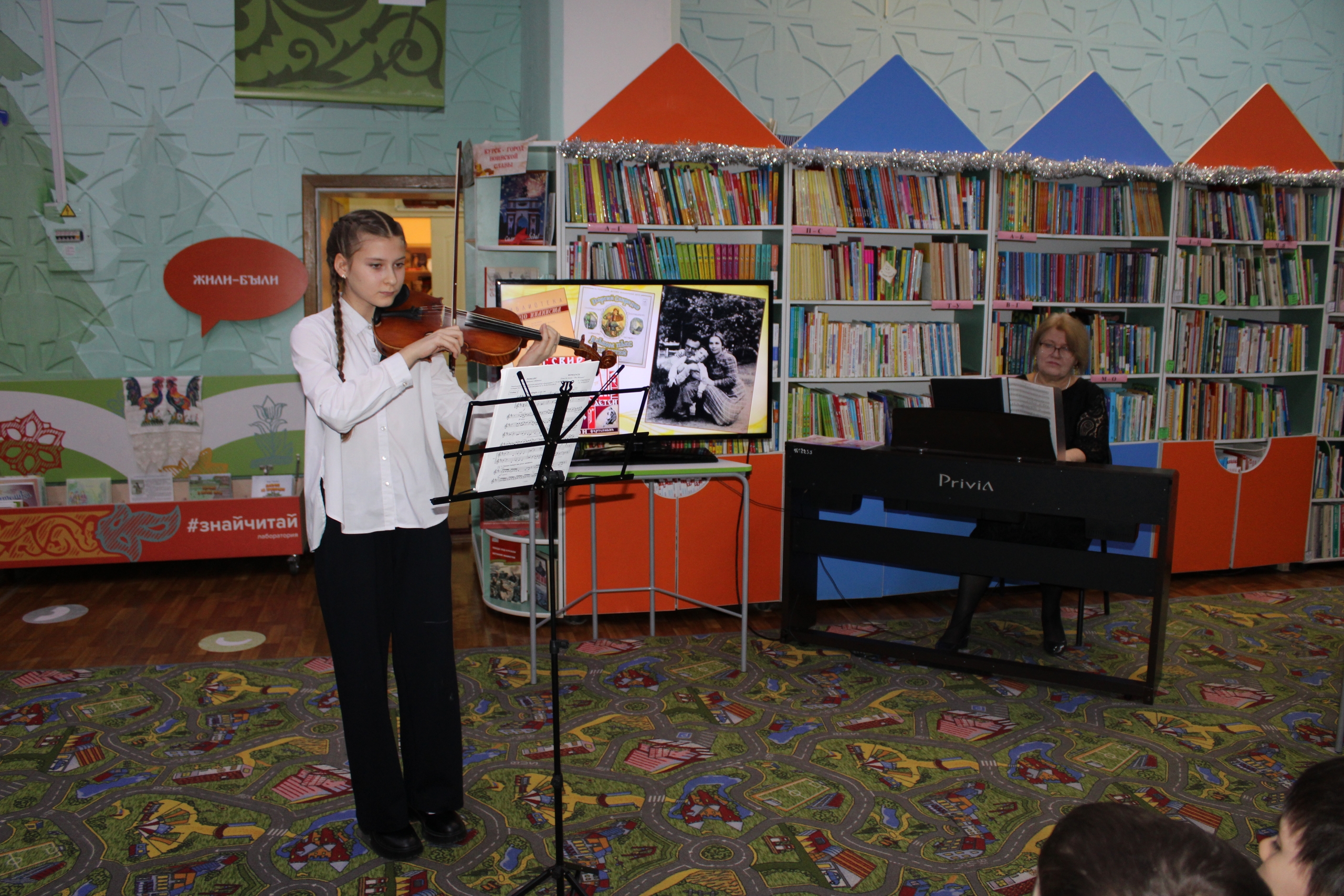 Встреча началась с выступления юных скрипачей из Суджанской детской школы искусств (преподаватель Н. А. Бабичева). Их игра очаровала слушателей исполнением вальса из музыкального сопровождения к повести А.С. Пушкина «Метель».