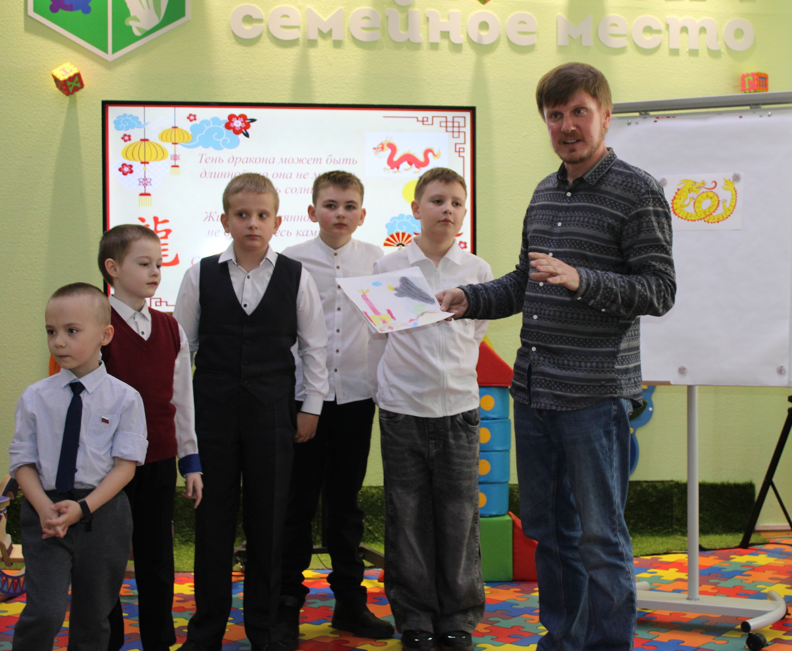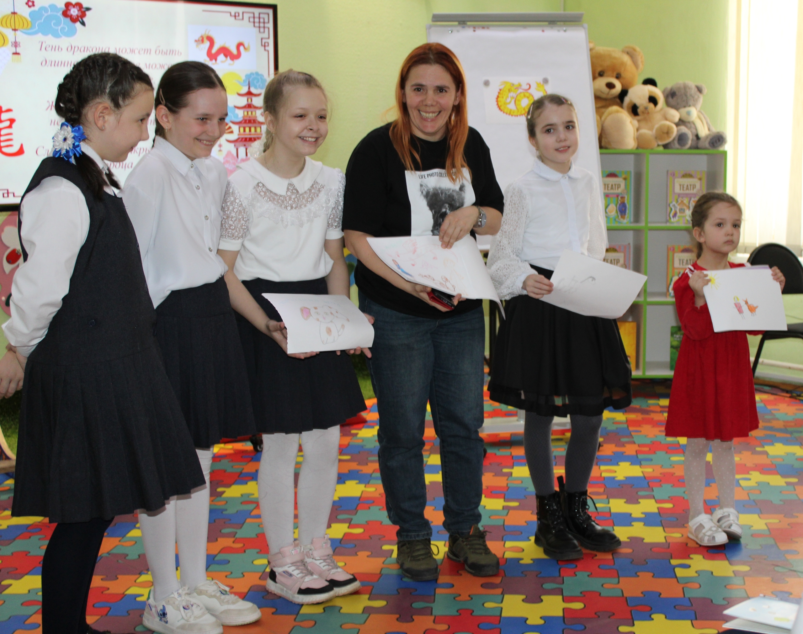 Мероприятие завершилось общей творческой работой — участники нарисовали образ мифического существа — величественного дракона.