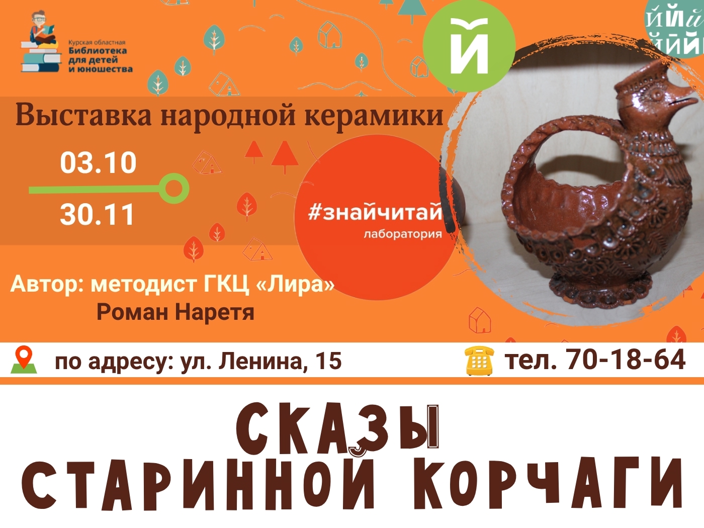 С 3 октября по 30 ноября 2025 года в Лаборатории детского и подросткового чтения #ЗнайЧитай действует уникальная выставка традиционной керамической игрушки художника и собирателя народных ремесел Романа Юрьевича Нарети «Сказы старинной Корчаги: живая история для ценителей народной культуры».
