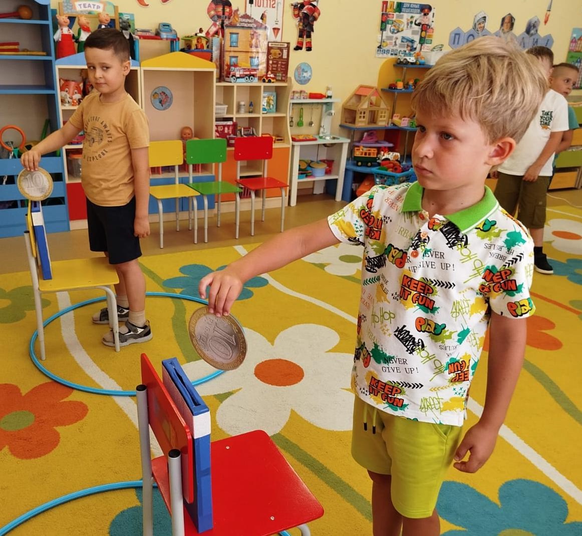 В завершение малыши складывали из пазлов денежные банкноты и приняли участие в эстафете «Перенеси монету».