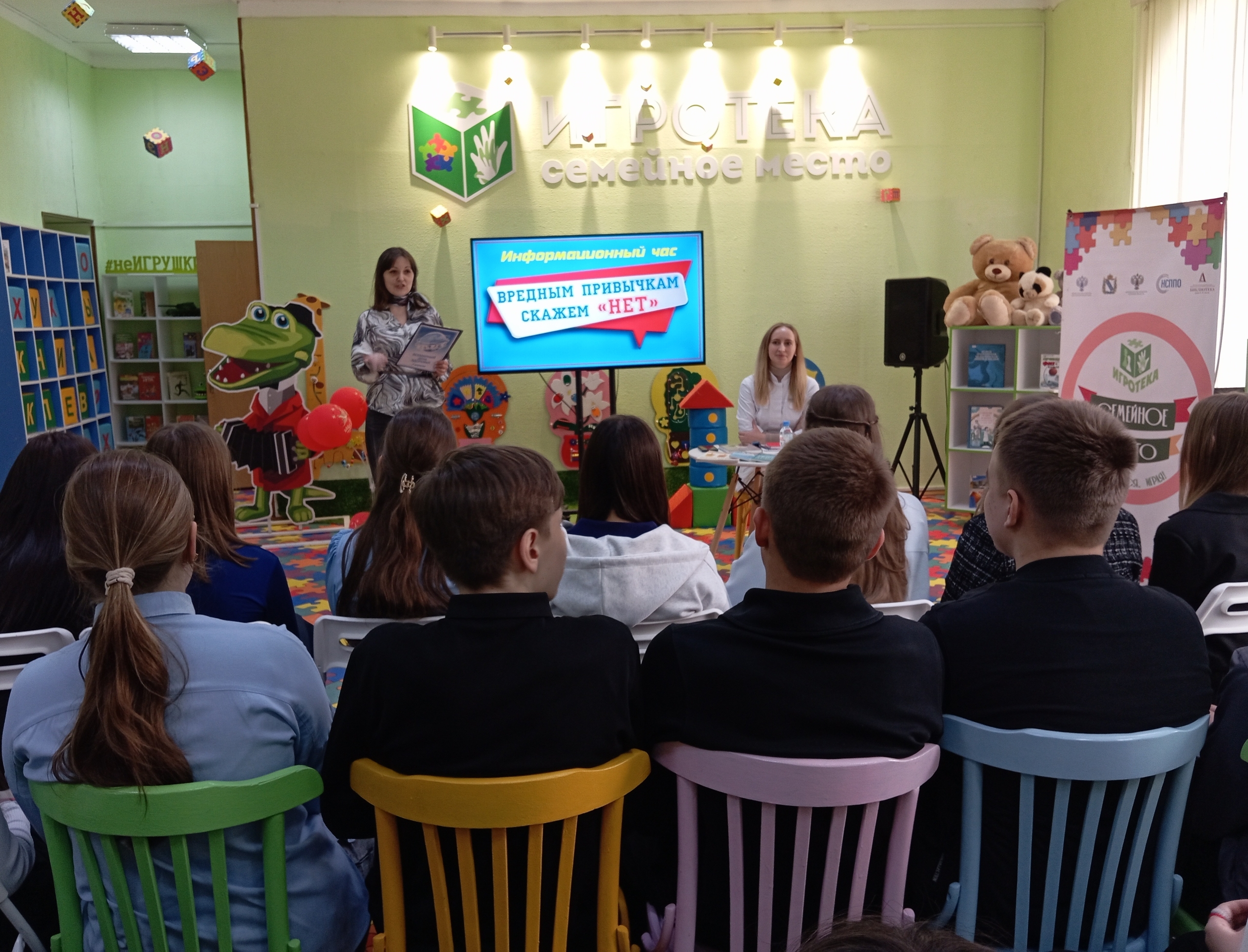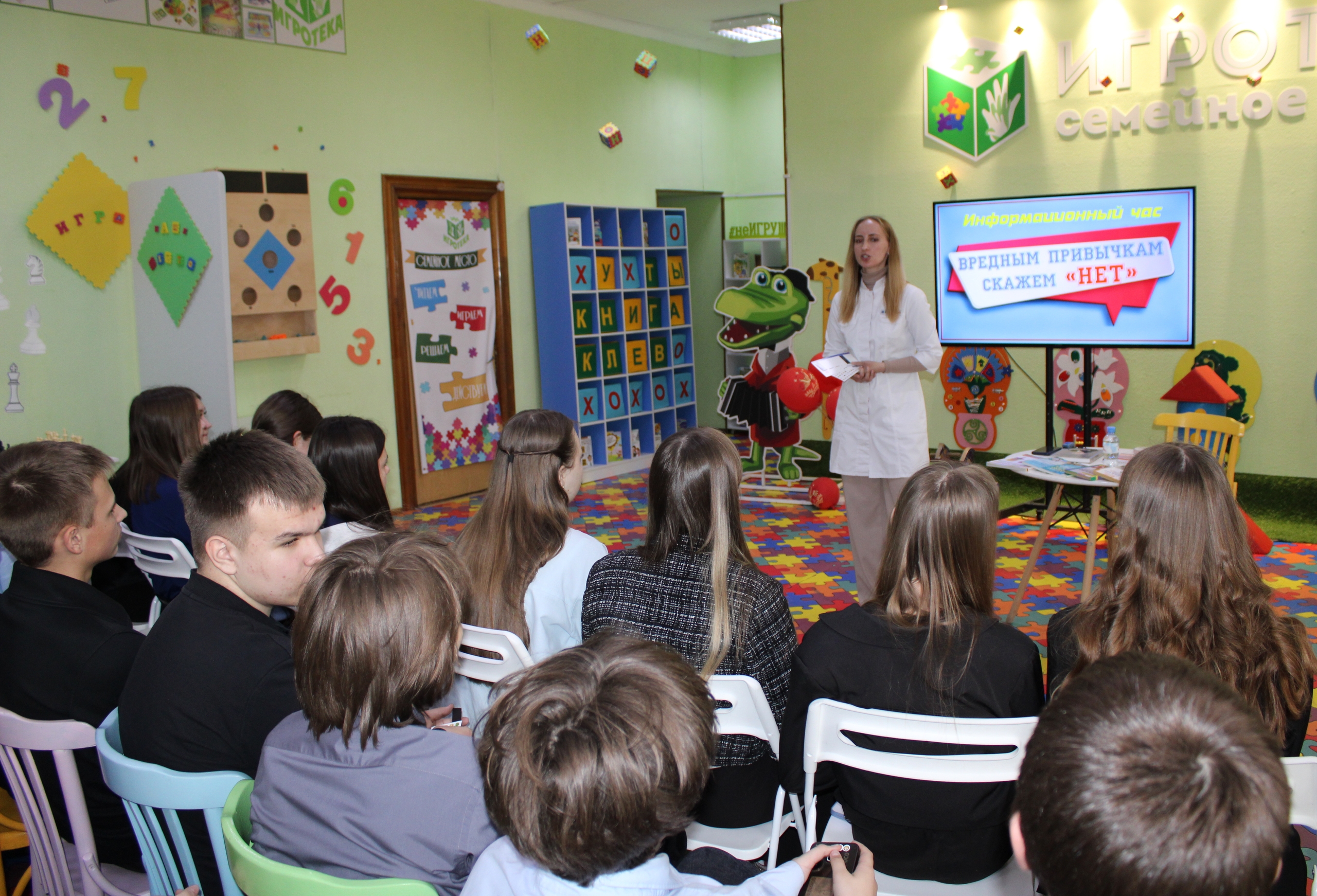 Спикером мероприятия выступила член Союза педиатров России, врач-педиатр Областного клинического противотуберкулёзного диспансера Т. С. Егорова. Она рассказала о различных видах вредных привычек: от курения и злоупотребления алкоголем до более современных зависимостей, об их негативном влиянии на организм. В завершение Татьяна Сергеевна подарила библиотеке