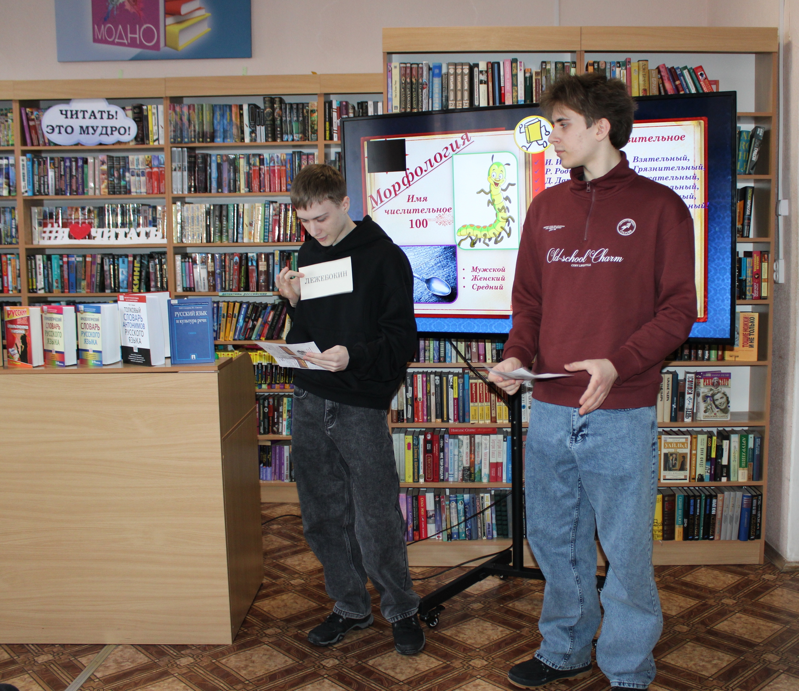 Учащиеся познакомились с историей возникновения славянской письменности, вспомнили основные разделы русского языка и выдающихся лексикографов В. И. Даля и С. И. Ожегова, поработали со словарями.